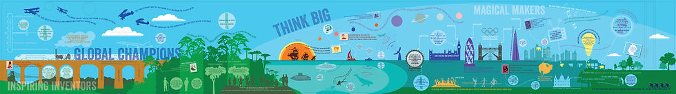 Inspire the pupils to Think Big, to imagine themselves on a journey of discovery through the world. KS2 corridor, connecting classrooms.