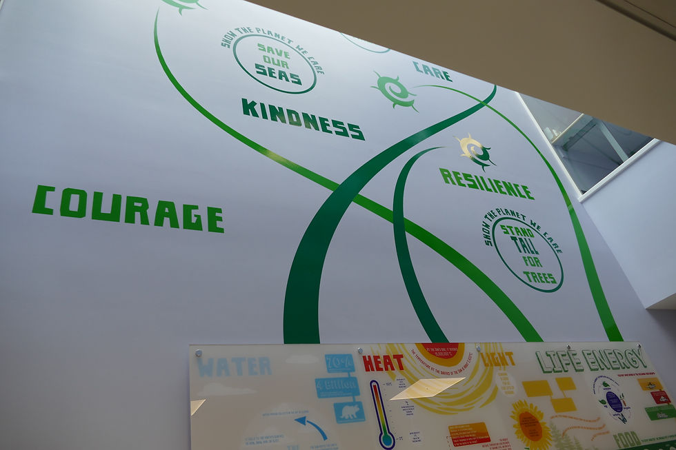 A versatile design scheme for six walls, L&S created our 'splash' graphics, incorporating a favourite round window in the centre. Fun facts, thoughtful moments, channelled through their school values Love, Inspire and Challenge.